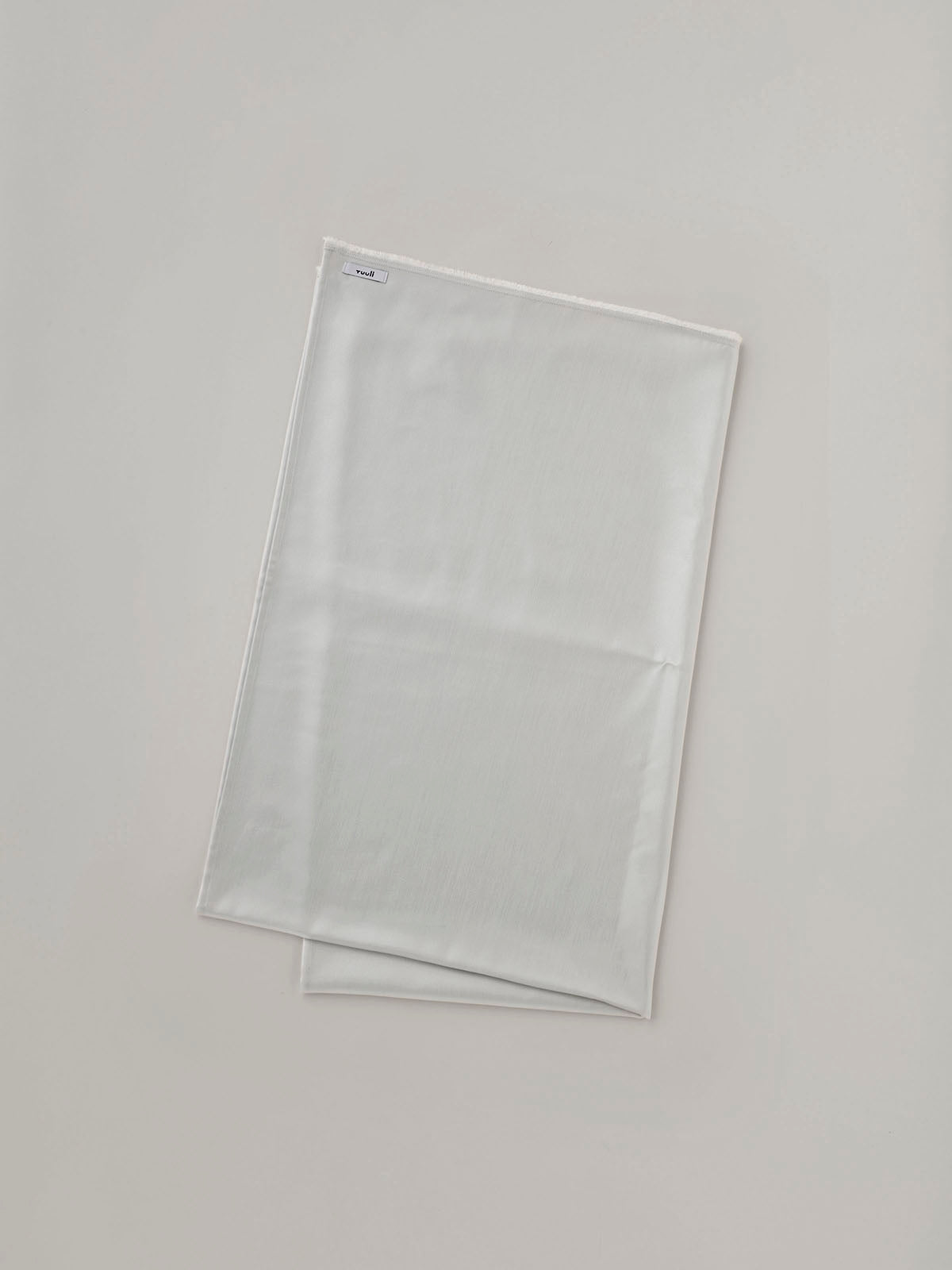 生地耳までデザインの一部として使用することで、端材を出さないエコフレンドリーなアイテムです。大判サイズなので、ストールとしてだけでなく、ひざ掛けとしてもお使いいただけます。