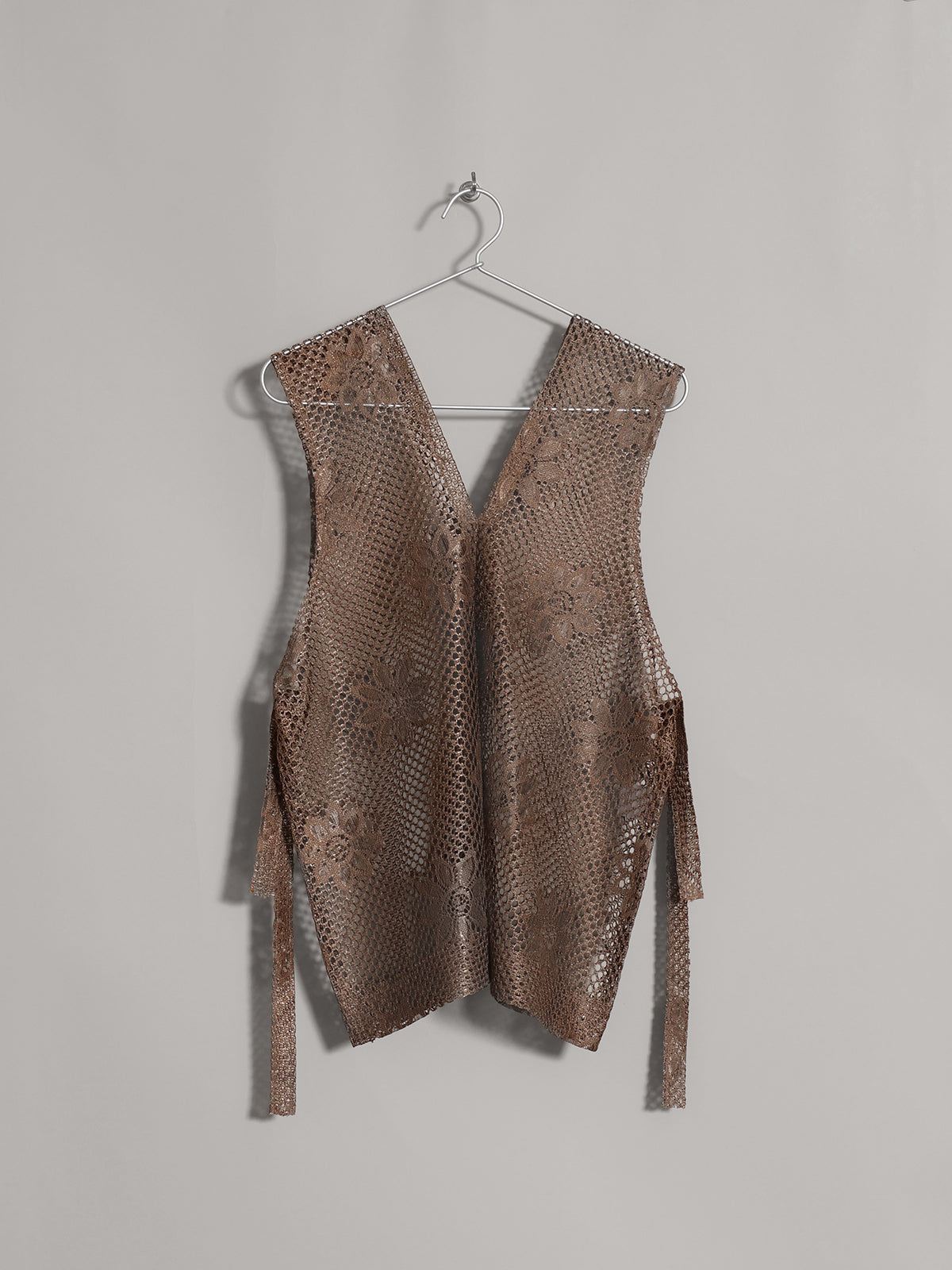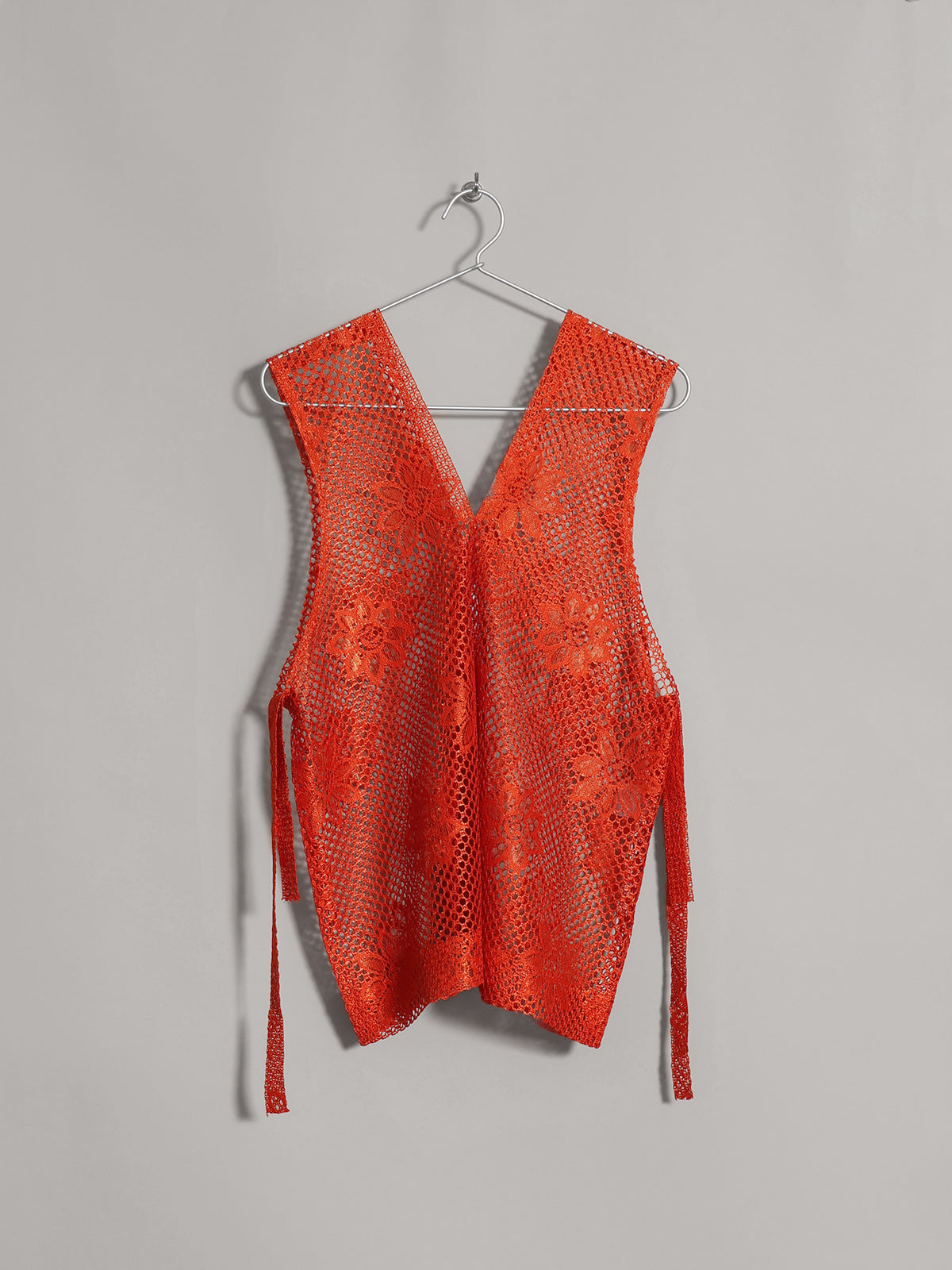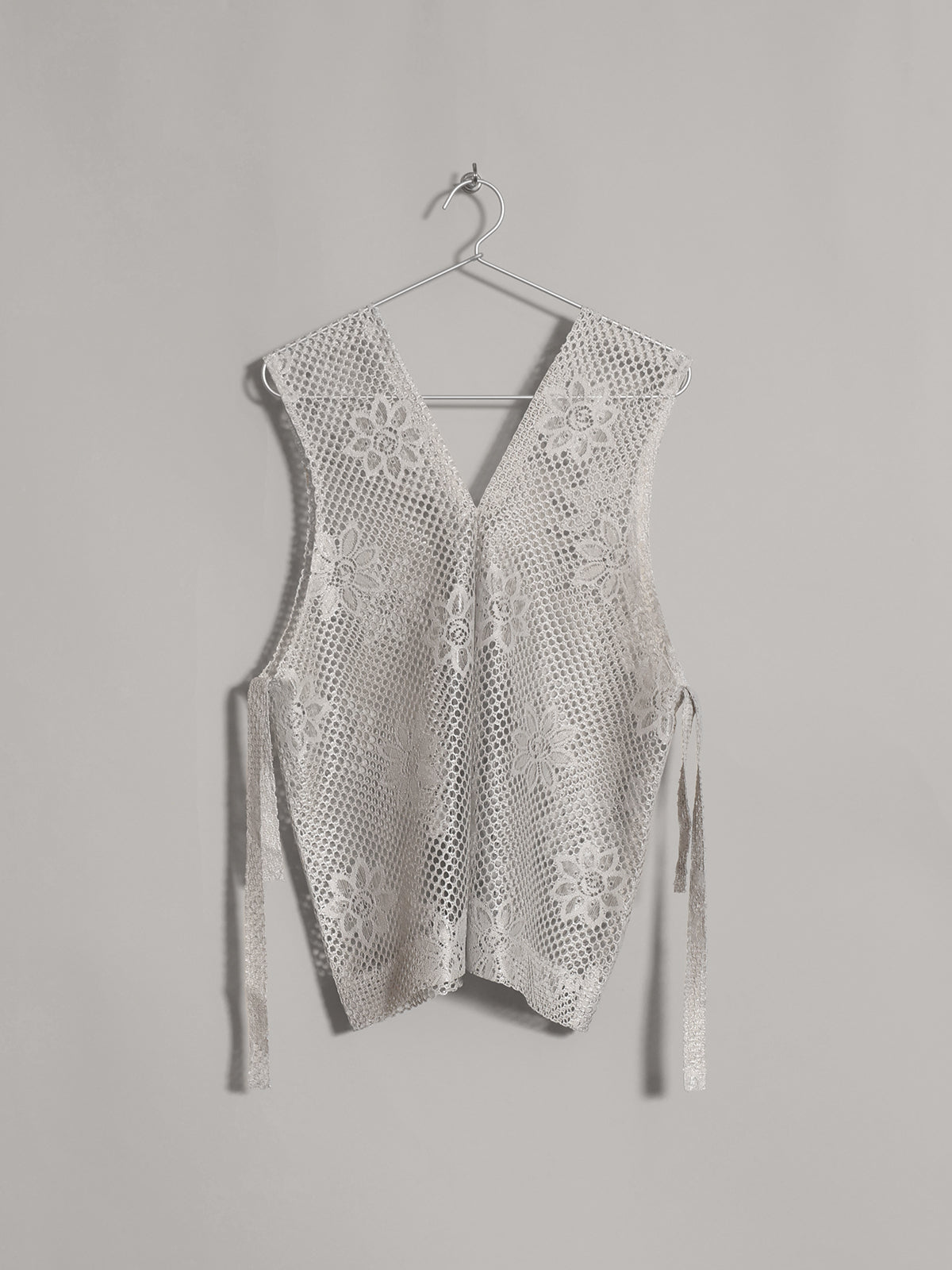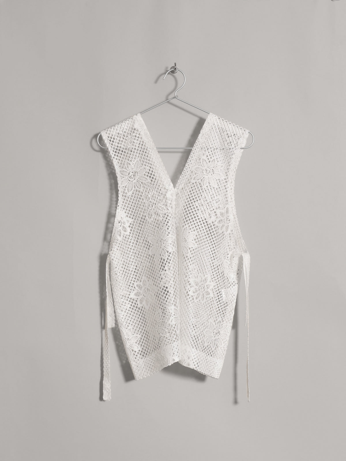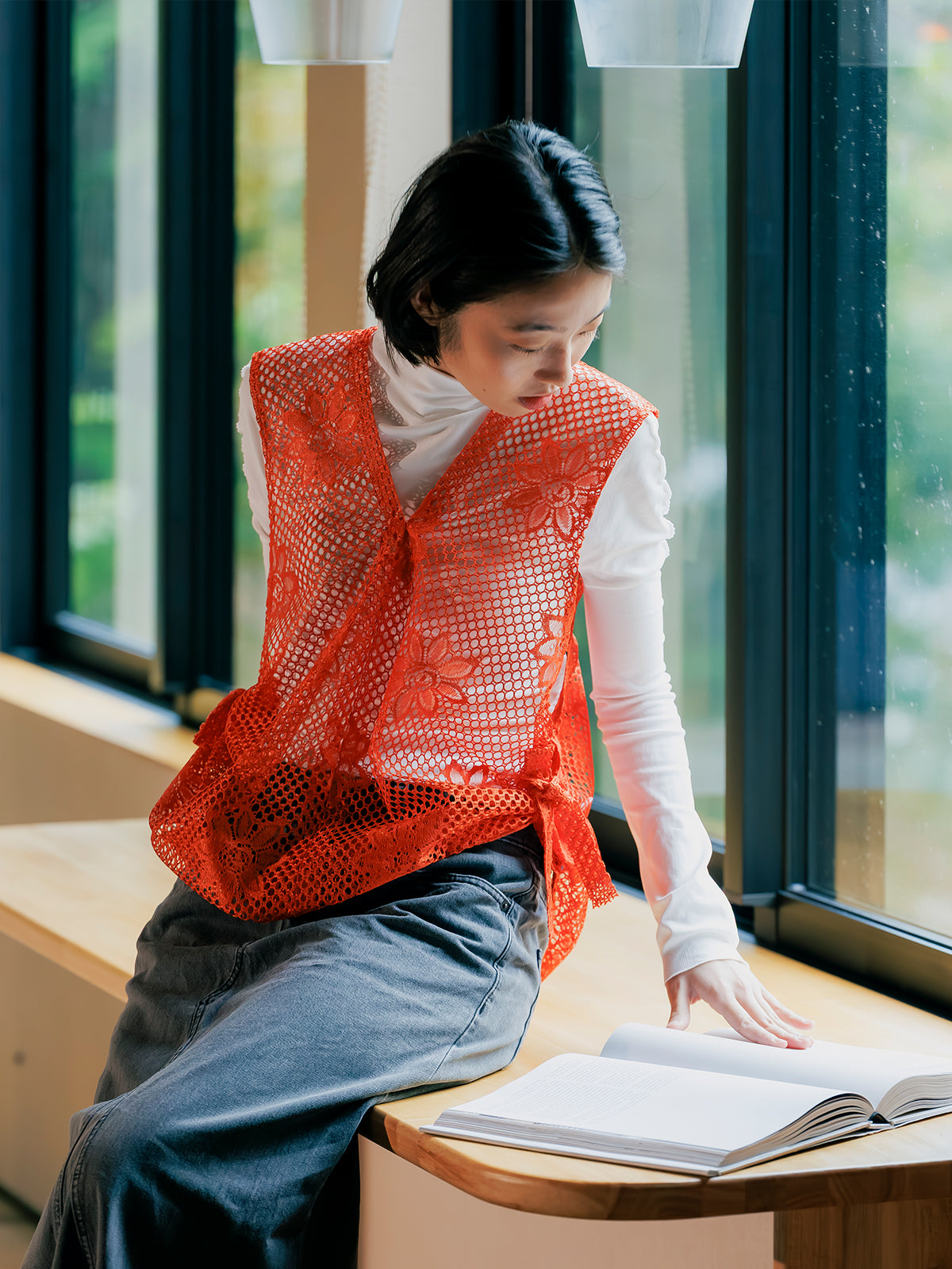 軽やかな透け感が動くたびにふんわり揺れ、普段のコーディネートに華やぎを添えます。シンプルなTシャツやデニムに重ねるだけで、女性らしさと洗練された印象を演出。さらに、サイドにあしらったリボンがデザインのアクセントとなり、結び方ひとつで印象を変えられるレイヤードアイテムです。